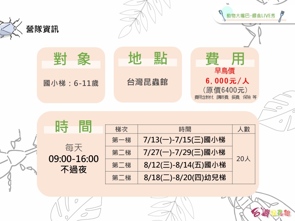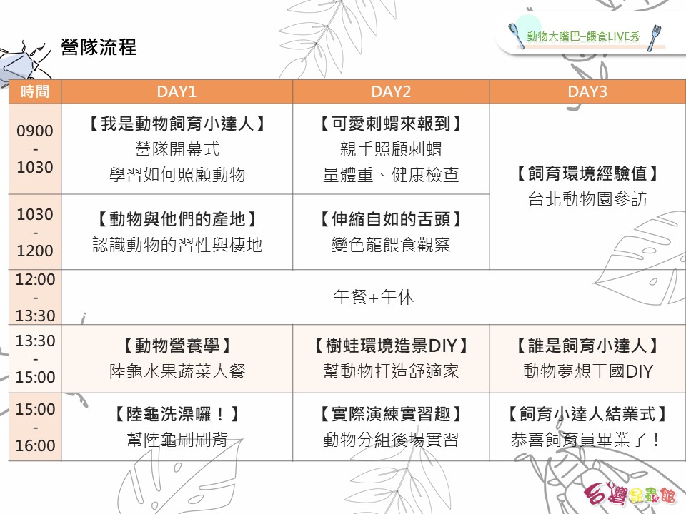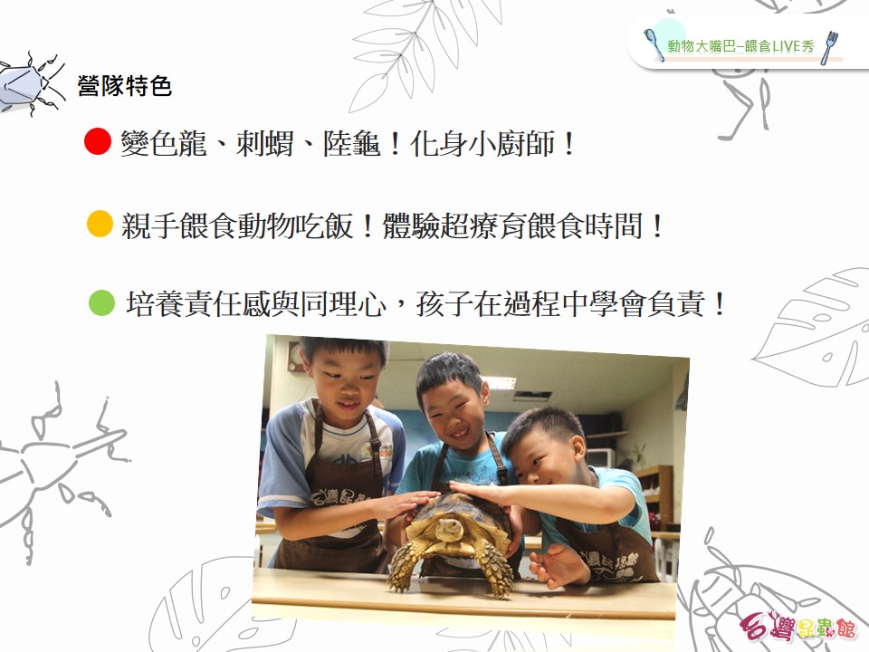 8/18(二)-8/20(四)動物飼育小達人-餵食體驗三日營(幼兒)早鳥價