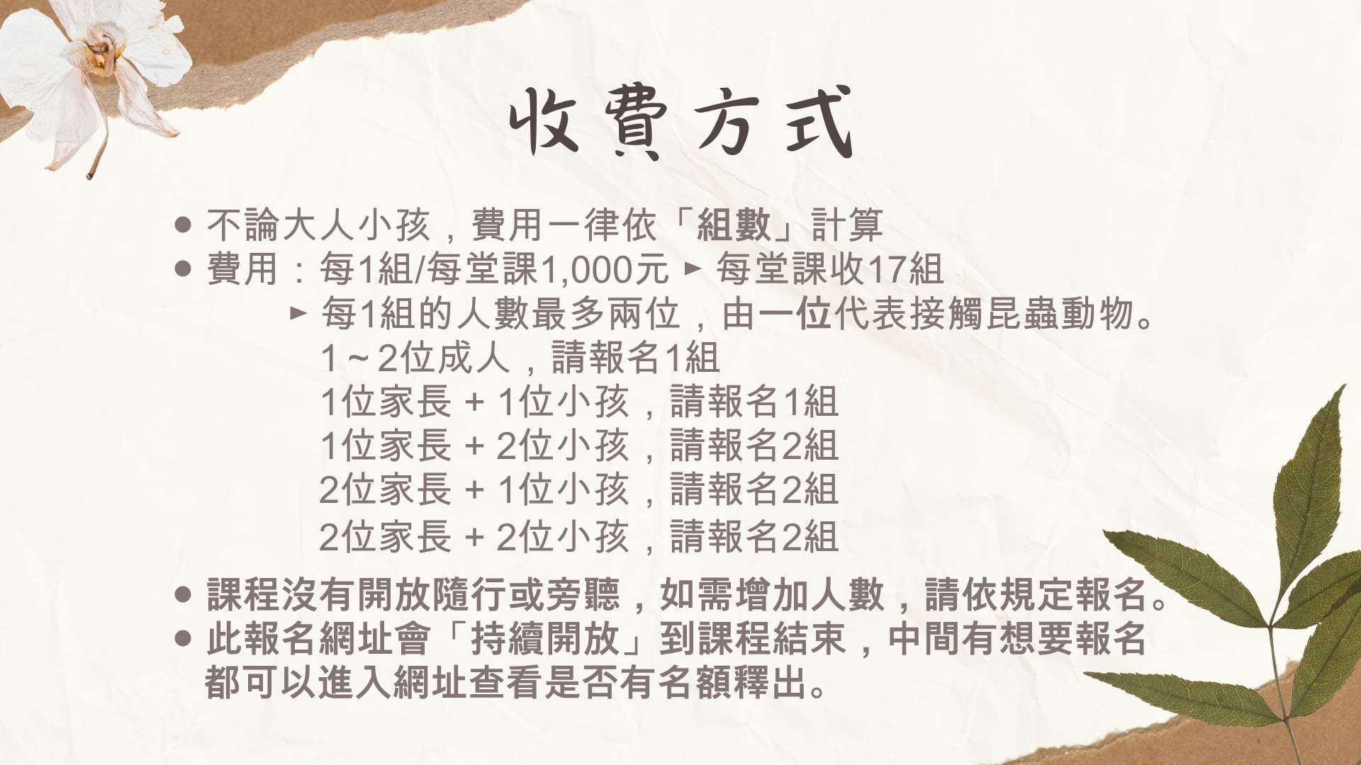 *若未於預定時間收到,請透過 FB 私訊【台灣昆蟲館-新竹館】索取。